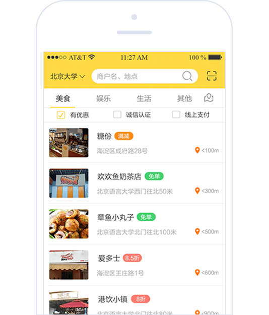 为北京送姜信息科技有限公司开发的大学生手机信用支付平台(App + Web管理后台)。团队完成整个系统方案的设计与开发,包括手机商家端、手机学生端、WEB管理界面、服务器后台等。